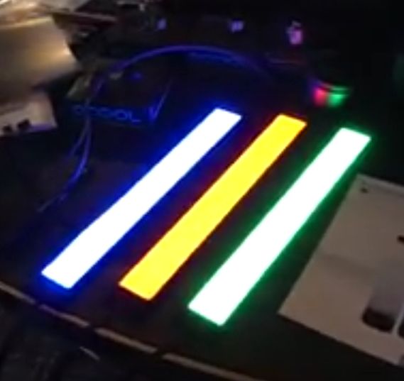 Each panel has dimensions of 312 x 39 x 7 mm, it is equipped with 30-cm power cable with three-pin connector. Â Power is supplied by the same connector as on the case fans.