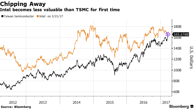 TSMC outperformed Intel in terms of capitalization (2017-03-23)