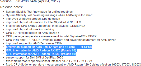 In addition, we find confirmation that the video card Radeon RX 580 and Radeon RX 570 will be based on the GPU Polaris 10 (Ellesmere),. The debut of video cards is scheduled for April 18, if you believe the latest intelligence reports, and the Radeon RX 560 and Radeon RX 550 based on the new processor Polaris 12 will appear a little later. Rumors about AMD's intentions to present the so-called HEDT platform , which would adapt server processors with the Zen architecture to the needs of desktop owners, are becoming more insistent. It is expected that by the summer AMD will offer Ryzen processors with 12 and 16 cores, respectively. Beta version of the AIDA64 utility supports not only these processors, but also Intel solutions with Skylake architecture, which will be used in the server segment.