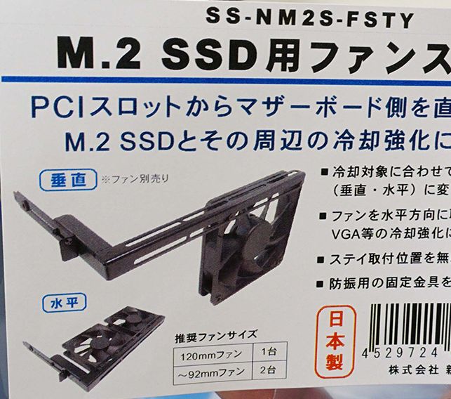 Times are changing, and now the manufacturers of cooling systems are increasingly trying to provide an accessory that will make owners of solid-state drives in the performance of M.2 spend extra money on it.  Active cooling systems SSD ceased to be a rarity, and colleagues from the site AKIBA PC Hotline managed to find in Japanese stores one of the devices that allow additional SSD fans to be fixed in the vicinity of SSD.