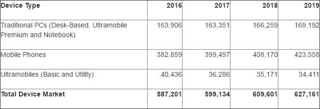 According to the forecast of Gartner, the market of traditional PCs and tablets will be reduced in physical terms in the next two years, but the average selling price of products will increase.  In any case, in monetary terms, the market will return to growth next year.