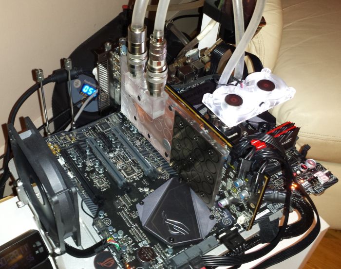 The appearance in the US version of the online store NVIDIA Titan Xp reference design  at a price of $ 1200 per piece allowed several enthusiasts to begin replenishing HWBot statistics for this product.  Before the liquid nitrogen, the matter has not yet reached, but the waterblocks on the latest NVIDIA graphics card have already been installed by the American jpmboy and its Canadian rival Uing07 .  The latter, judging by the description, used some unattended system of liquid cooling, so the overclocking turned out to be moderate - up to 2050 MHz "in the core".