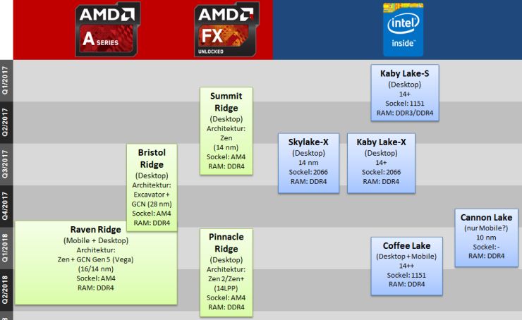 It's hard to keep in mind all the actual changes in AMD and Intel's processor plans, so PC Games Hardware's colleagues periodically update the "homemade road map", which allows a quick glance at  to understand where these CPU makers will move in the coming months.