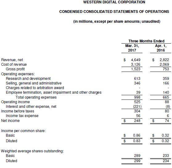Intels solid-state memory will continue to be used in Western Digital Corporation (2017-04-28)