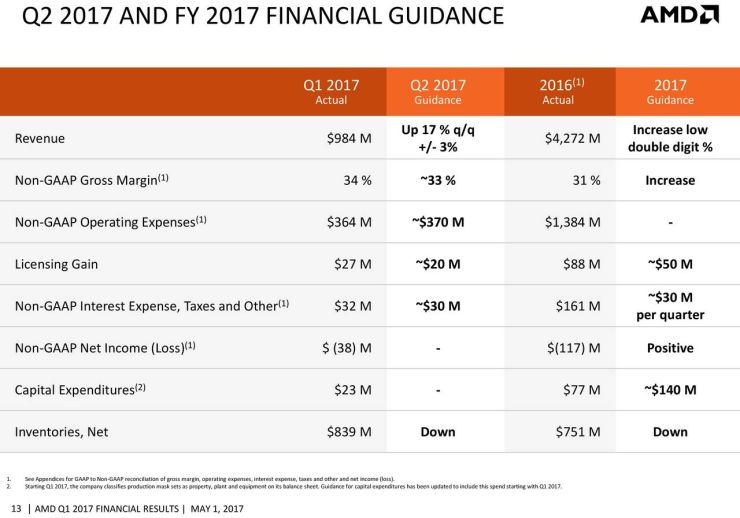 The forecast for the second quarter revealed AMD's lack of confidence in increasing the rate of profit - it should drop to 33%. Most likely, this is due to the fact that the more expensive Ryzen 7 processors will have less and less influence on the company's revenue, because now there are more affordable Ryzen 5 available on the market, which can be overclocked to improve the performance level. But revenue in the second quarter should grow in consecutive terms by a value of 14% to 20%.