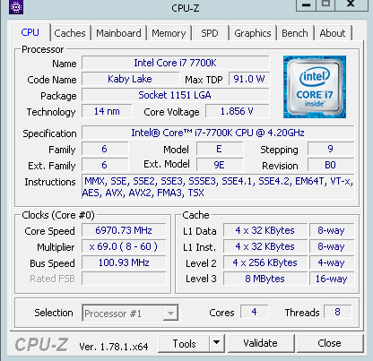 The processor had to overclock to 6970 MHz for this - it's very close to the "psychologically important level" of 7 GHz.  All four cores and Hyper-Threading have been active.