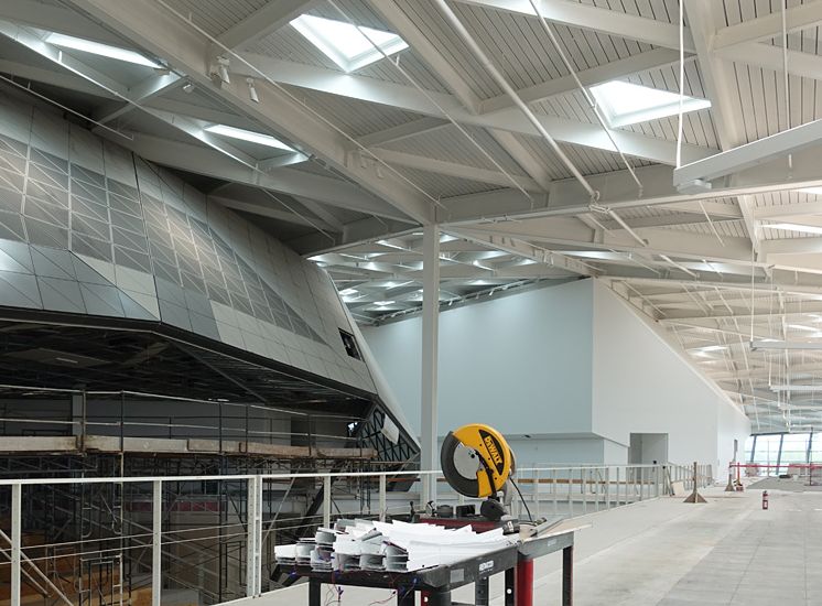 A large area of glazing allows a significant part of the day to dispense with artificial lighting.  In the roof of the building there are matt triangular windows, through which sunlight penetrates into the premises of the headquarters.  The pipeline, laid under the floor, can be used both for heating the rooms and for cooling - it circulates the water, which is given the right temperature.