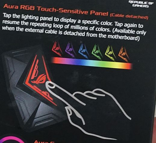 The color of the backlight is controlled both from the BIOS of the motherboard, and with the help of a special application - in this case the bridge needs to be connected to the motherboard using a cable.  If this is not done, the color will change cyclically in automatic mode, and the user will be able to "freeze" the liked shade by touching the Asus ROG logo on the bridge casing.