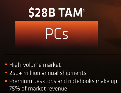 CEO Lisa Su added to these arguments that more than 250 million computers are sold in the world each year, and sales of expensive desktops and laptops account for 75% of revenue.