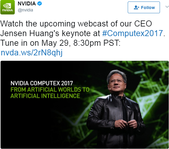 The thirst for new products, provoked by numerous profile publications, is so great for the public that companies do not stop speculating on these expectations. For example, NVIDIA representatives    posted on social networks an announcement about the forthcoming speech of the company's founder at the opening of the exhibition Computex 2017 tonight.