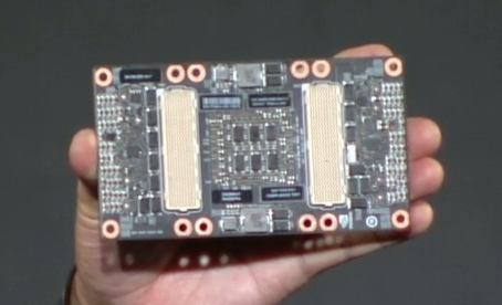 The Tesla V100 module in SXM version was demonstrated not only on sketches, but also alive - the head of the company held it in his hands, as at the previous event.