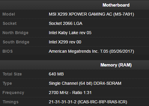 DDR4-5400 mode (21-31-31-31) , which was submitted by the Taiwan overclocker, can be considered one of the achievements of both new Kaby Lake-X processors in the LGA 2066 version and The accompanying motherboards based on the Intel X299 .