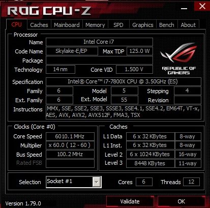Six-core Skylake-X set a Cinebench R15 record at 6010 MHz
