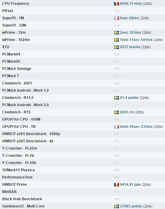 In other disciplines the frequency of the processor to the turn of 6.0 GHz did not last, but in these conditions the Swedish enthusiast was able to update a number of records among the processors with six cores.