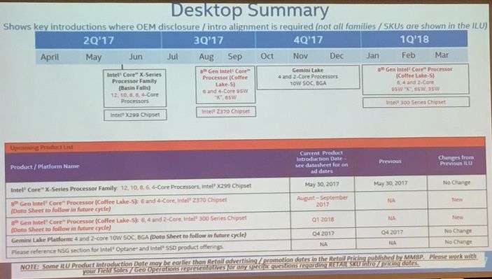 We have the opportunity to take another look at Intel's plans for a moderate freshness in the processor segment.  Firstly, it is interesting to note the actual absence of the 12-core model Skylake-X in the current products assortment  .  Apparently, Intel previously planned to introduce such a processor in late May, but before the announcement decided to "populate" it to delayed models with an increased number of cores.