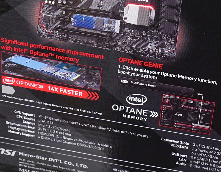 As noted by the Japanese resource AKIBA PC Hotline , in local stores there was a motherboard MSI Z270 Tomahawk Opt Boost, which is initially equipped with an Intel Optane drive with a capacity of 16 GB.  It is installed in the appropriate connector of the motherboard initially, although those who wish can remove it and replace it.