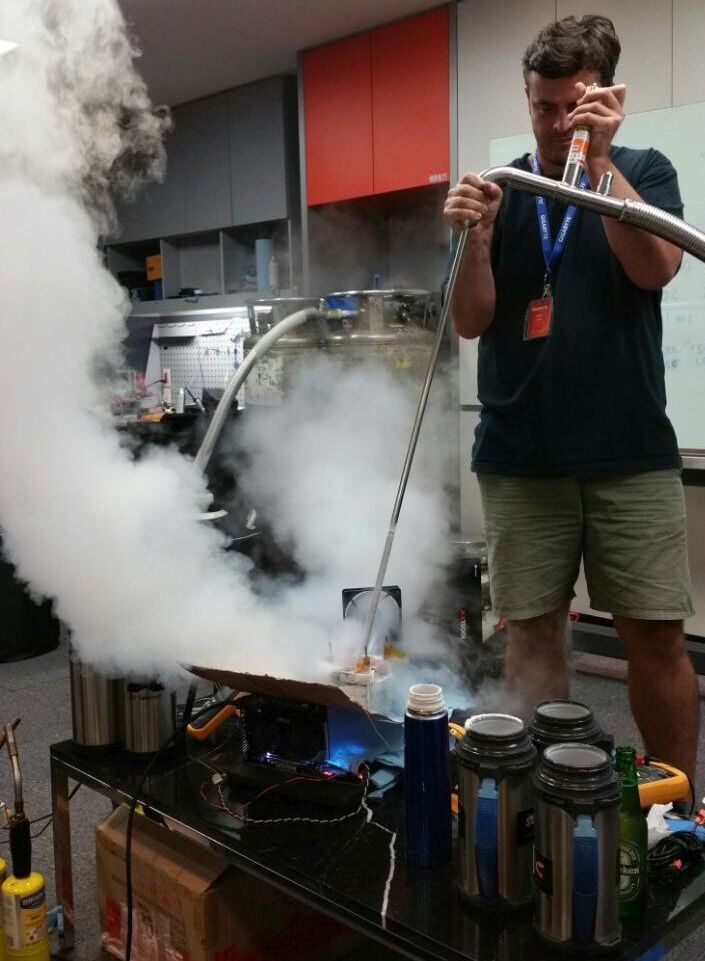 A pair of video cards GeForce GTX 1080 Ti also cooled with liquid nitrogen, it could work at frequencies of 2100/12248 MHz.  Traditionally, the Australians used the Gigabyte motherboard - this time, the X299-SOC Champion based on the Intel X299 .