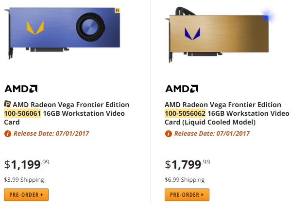 AMD Radeon Vega Frontier Edition Accelerators are available for order (2017-06-16)