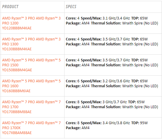Additional details about AMD Ryzen Pro processors (2017-06-30)