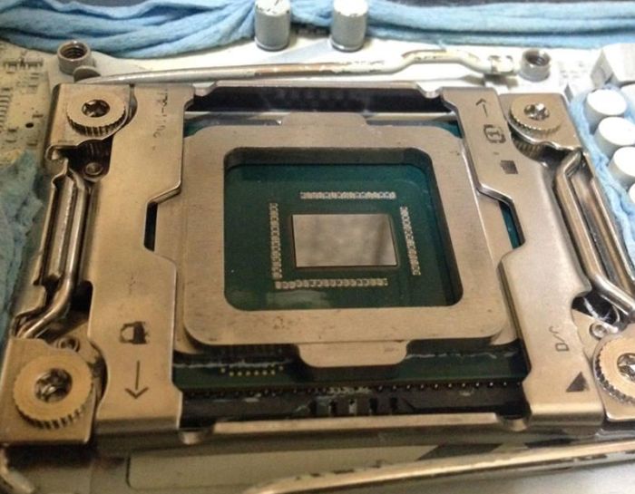 The Japanese enthusiast NABE was determined to remove the cover of the heat distributor from the Core i7-7740X family Kaby Lake-X family and to install a tank for liquid nitrogen on a bare crystal. Naturally, an alternative thermal interface appeared between the bottom of the glass and the processor chip.