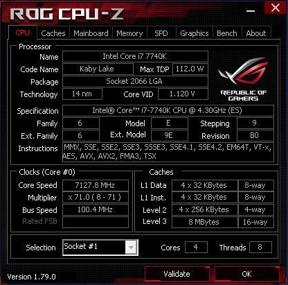 The central processor Core i7-7740X was overclocked under liquid nitrogen to 7128 MHz while maintaining the activity of four cores and Hyper-Threading.