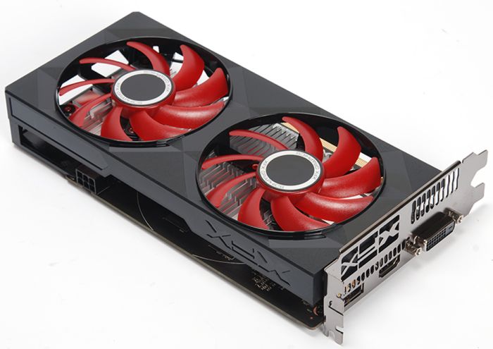 The video card is equipped with 4 GB of GDDR5 memory, has 896 stream processors and nominal frequencies of 1196/7000 MHz, but the memory bus is indeterminate: in one case XFX speaks of a 256-bit bus, and immediately attributes the novelty to the presence of a 128-bit bus in Two other cases.