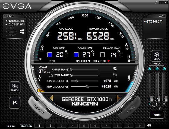 - duo GeForce GTX 1080 Ti in GPUPI 1B at frequencies of 2480-10320 MHz
