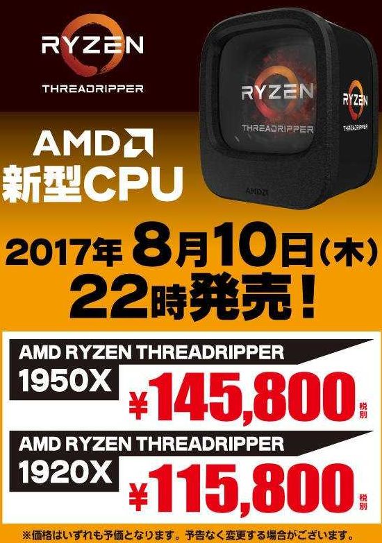 Japanese shops rushed to reduce prices for AMD processors Ryzen Threadripper (2017-08-24)