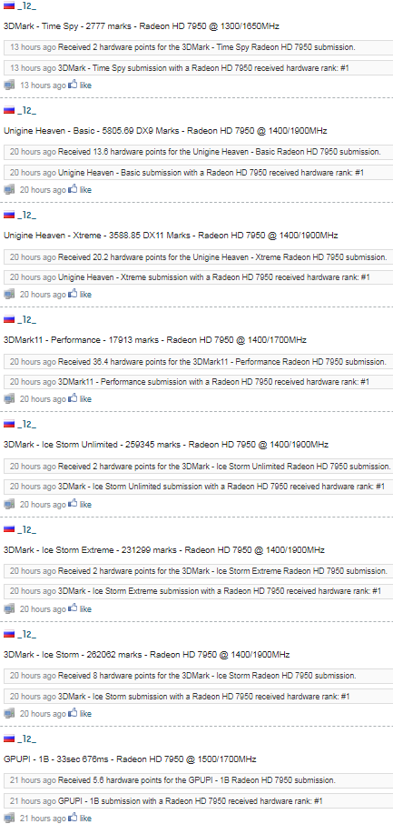 Seven records drove the video card Radeon HD 7950 to death (2017-08-06)