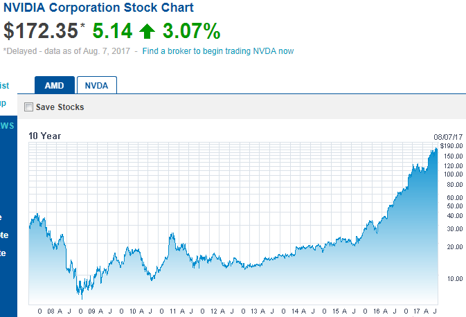 The share price of NVIDIA shares rose in anticipation of quarter results announcement (2017-08-08)