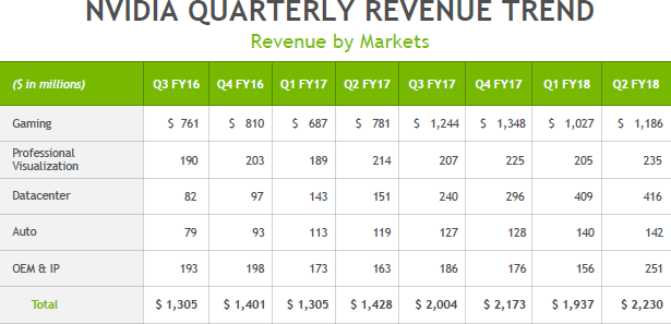 For the first time in a long time, the "OEM & IP" segment grew, mainly due to the growth in demand for OEM solutions, but NVIDIA itself stopped receiving license fees from Intel, which previously amounted to $ 66 million for the quarter. Here there is a nuance: to the proceeds from the implementation of OEM-solutions, NVIDIA has added receipts from specialized products for "miners". We will talk about this separately today, but for now, we simply note the accompanying increase