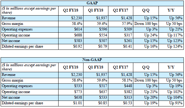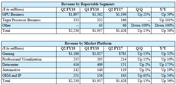We remind you that on the 30th of July the second quarter of 2018 of the financial year ended on the NVIDIA calendar.