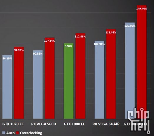 The version of Radeon RX Vega 64 with air cooling system, according to this source, is slightly faster than the GeForce GTX 1080. In principle, this is a good deal, because it was previously expected that the new AMD will be located between the GeForce GTX 1070 and GeForce GTX 1080.
