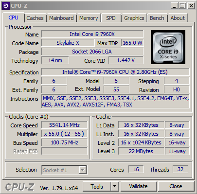 Sixteen-core Core i9-7960X in Cinebench R15 (2017-08-17)