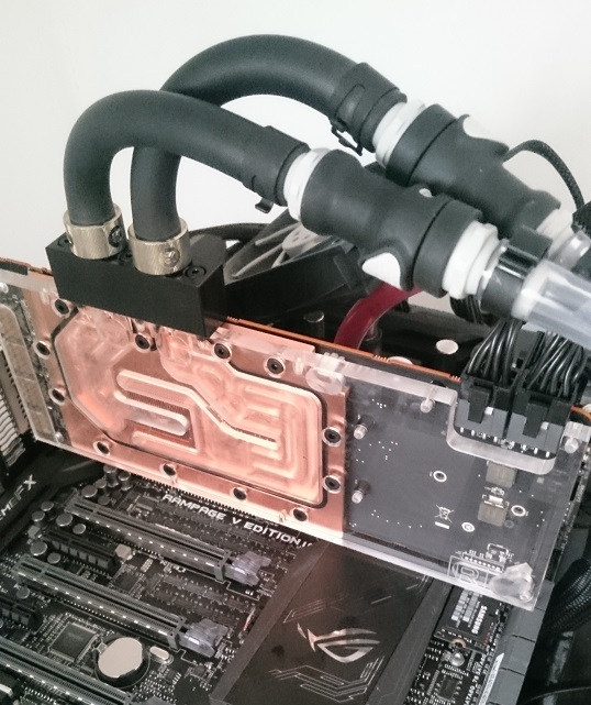 The central processor Core i7-6950X next door was also cooled by a water block, and limited to a frequency of 4.4 GHz.  This is a completely adequate result for liquid cooling, but we are accustomed to seeing this processor with higher frequencies achieved by cryogenic cooling or phase-transition systems.
