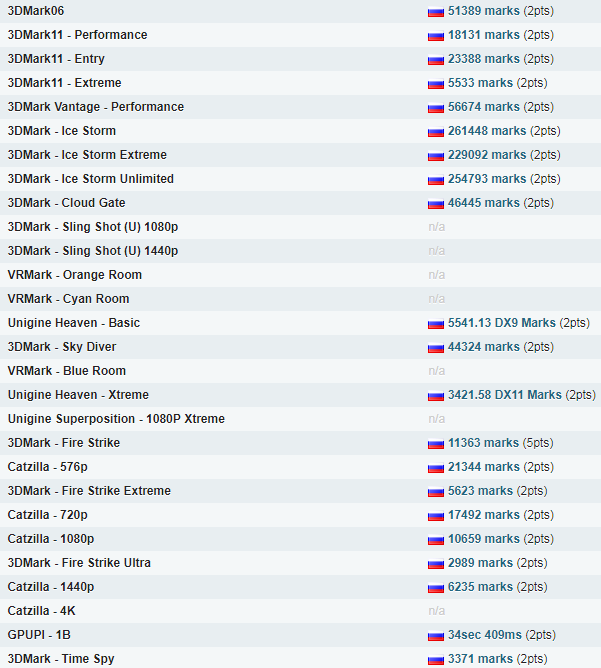 The pair Radeon R9 290 allowed the Russian to set 9 records in the model standings (2017-03-26)