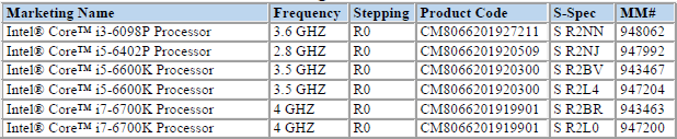 POSTER: computer news   ||    THE OLDER SKYLAKE PROCESSORS WITH A FREE MULTIPLIER ARE REMOVED FROM PRODUCTION