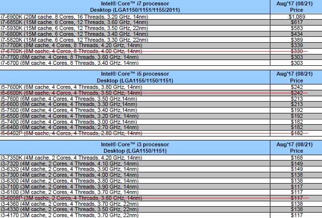 The older Skylake processors with a free multiplier are removed from production (2017-09-07)