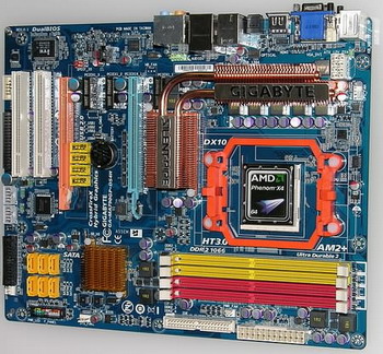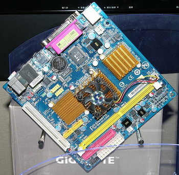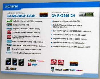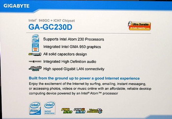Besides motherboards on base Of intel 4th series , gigabyte presented some products for AMD processors , 3d- adapter AMD radeon HD 4850 and intel 945GC motherboard ( intended for intel atom processors ).