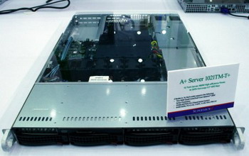 The A+ server 1021TM-T+ is based on NVIDIA chipset ( mCP55V-Pro ) and allow to install up to two dual or 4- core AMD opteron processors 2000, up to 64 GB DDR2 memory, 980- W PSU and four 3,5 SATA sections :