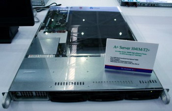 A+ server 1041M-T2+: up to four AMD opteron 8000 processors, up to 128 GB DDR2 memory with 1000- W PSU .