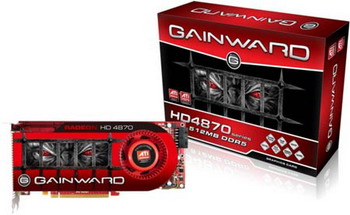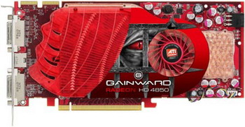 Gainward company recently released two GPU models ATI radeon HD 4800 - Gainward HD4870 and Gainward HD4850. Those product are the copy of reference design. The HD4870 is equipped with 512 mb GDDR5 memory , which works at effective frequency 3600 MHz (900 MHz X 4); The core frequency is 750 MHz.