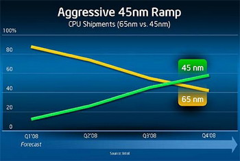 Intel continues to increase the volumes of its 45- nm rocessors production , while AMD prepares the release of this first CPU. According to intel, Paul Otellini, the company plan to sell before the end of this year 100 million chips, made on the progressive technical process.