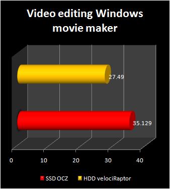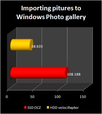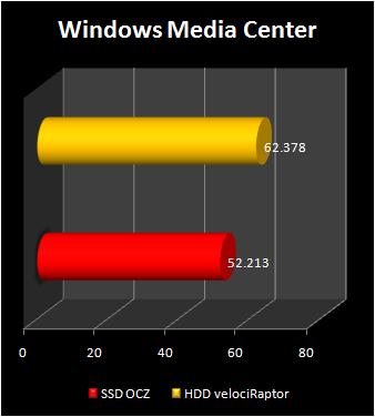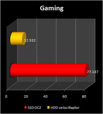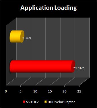 In PCMark vantage tests, SSD substantially outdistanced its competitor. Games, load OS applications, work with photographs and video,  sound recordings , Windows media player - practically everywhere SSD was faster . As a whole , : Total result SSD OCZ  - 9856 points. Total result for HDD WD velociRaptor is only  3690 marks.