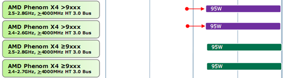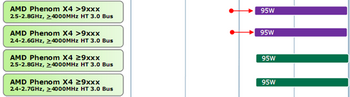 Here is the clock frequencies of 45 nm AMD processors with TDP level not more than 95 W. In this case deneb socket AM3 processors will be satisfied by the frequencies in the range 2.4-2.8 GHz. The announcement of these processors is planned for the first quarter 2009.