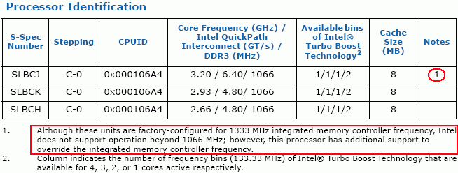 Extreme processors model are formally capable of working with DDR3-1333 memory regime, but officially they support only DDR3-1066 regime. Furthermore, Intel indicates the support of memory overclock from the integrated memory controller side