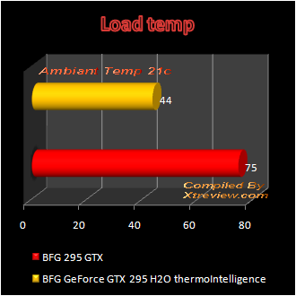 The two-processor video card is equipped with copper water-block, developed in collaboration with danger den specialists . This solution (water-block thermoIntelligence water cooling solution) must ensure to the video accelerator not only effective, but also quiet heat withdrawal. BFG speaks about significant superiority of the GTX 295 water cooled in comparison with the standard air cooler : The GPU is cooler : 44c .