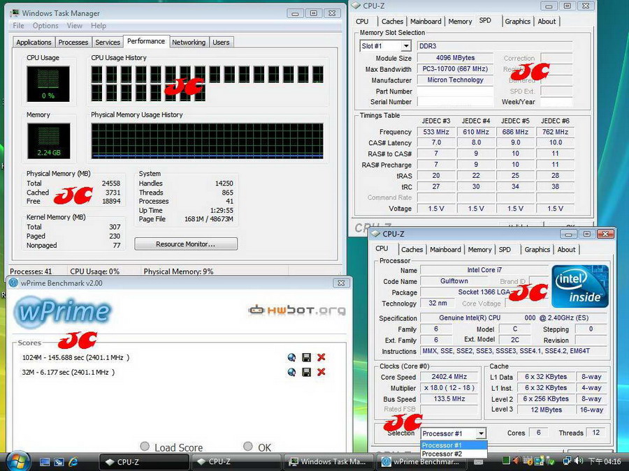 On XtremeSystems forum pages appeared the first screens shot and benchmarks of engineering models six-core 32 nm processors LGA 1366, working at 2.4 GHz frequency. Each core has 32 + 32 KB cache in the first level, 256 KB cache in the second level, and the cache of the third level with 12 mb volume is divided between six core. In two-processor system the quantity of virtual core grows to twenty four pieces. Related Products :