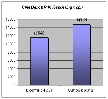 Tests made by our associate did not reveal the convincing advantage of the six-core processors gulftown above the four core bloomfield, with exception of cinebench r10 and synthetic test sandra 2009. Obviously, the existing programs cannot realize the entire potential of twelve virtual core. Related Products :