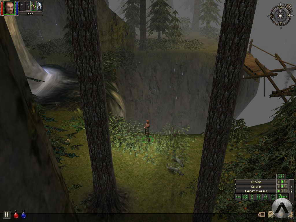 Further hampering gameplay is a strong tendency toward totally flat level design, especially in the first 20 hours or so. Though there are moments of stunning beauty, such as looking out from the bridge over the waterfall near the beginning, the bulk of the world of Ehb is divided up into a series of flat plateaus, connected by short, squat ramps. The problem is most noticeable in the first few dungeons, which are mostly just large expanses of similar looking rooms lying across the same horizontal plane. The flatness clears up to an extent further into the title, but it is definitely noticeable at the beginning; it becomes a source of tedium when you are making frequent runs back to town to resupply, staring at the same, unvaried terrain each time. The developers didn\'t see fit to include any sort of "Town Portal" spell like Diablo, requiring you to run the full length back to town if you use up all your health potions in the middle of a dungeon. The omission caused me a great deal of frustration on multiple occasions, and makes a packmule an essential item.